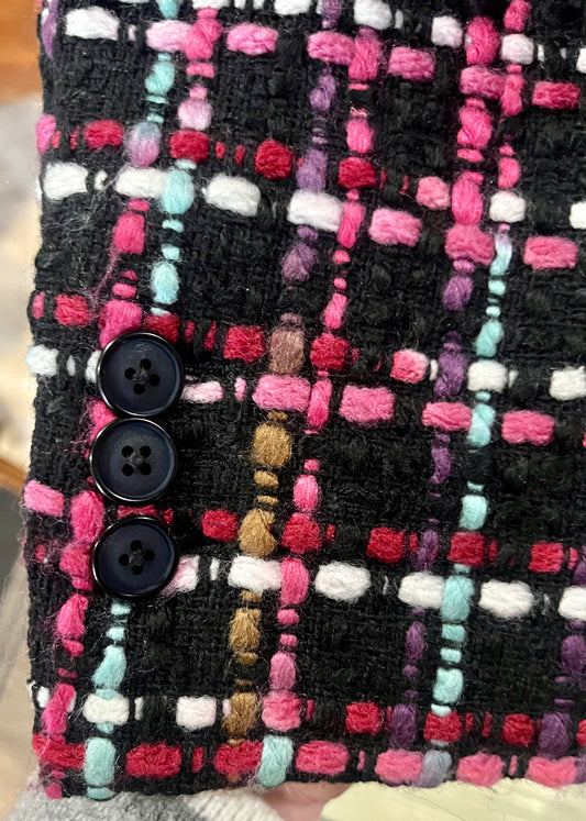 Claire Flowers Bouclé Blazer in Cherry Blossom Plaid