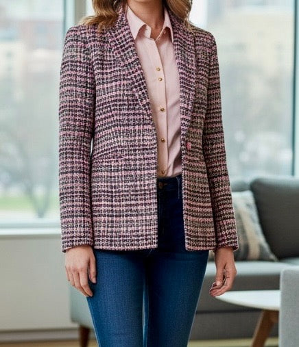Claire Flowers Bouclé Blazer in Cherry Blossom Plaid